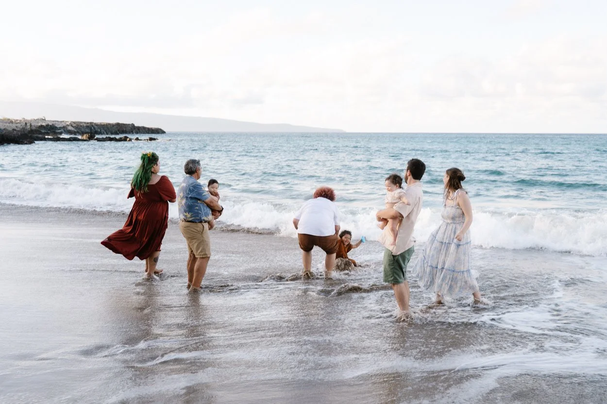 If you’re planning an extended family photoshoot on Maui and don’t resonate with traditional posing, matching outfits, or forced smiles, know that there’s another way. One where your family gets to simply be who they are.